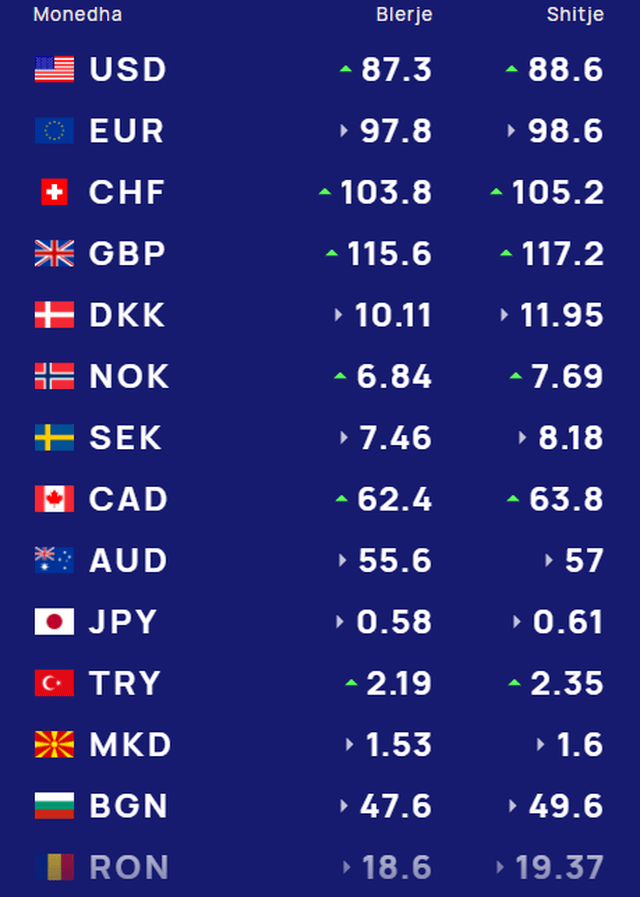 Franga zvicerane këmbehet në blerje me 103.8 lekë, ndërsa në shitje me 105.2 lekë.