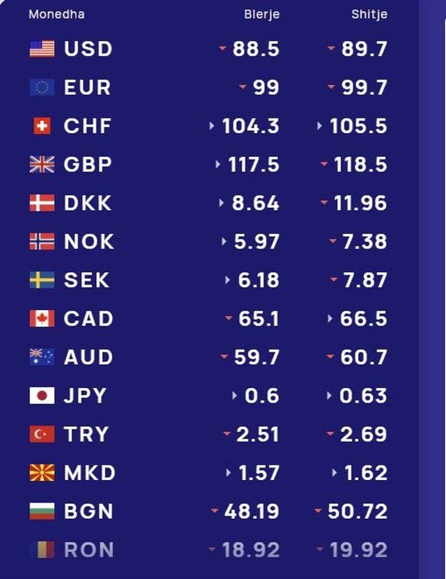 Franga zvicerane këmbehet në blerje me 104.3 lekë, ndërsa në shitje me 105.5 lekë.