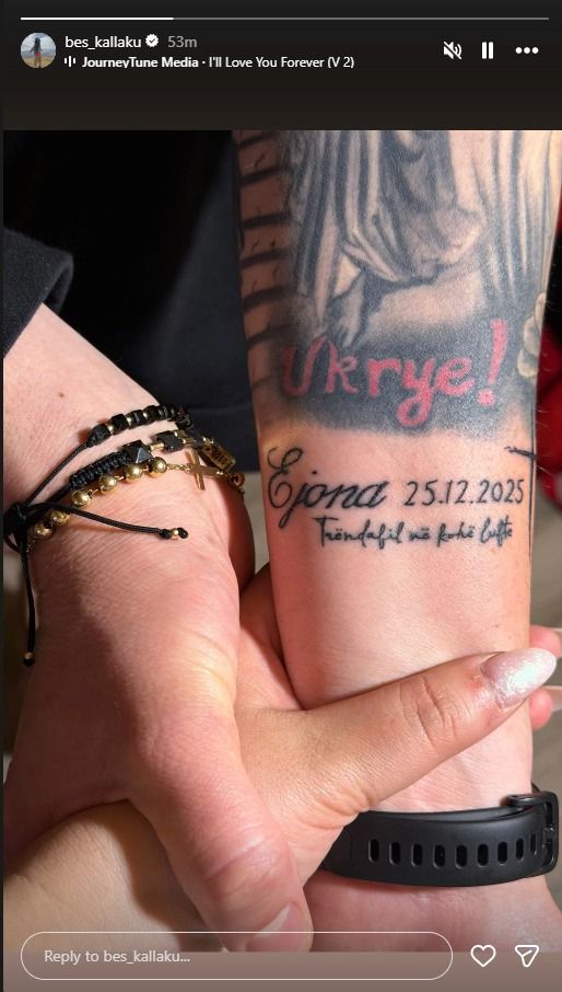 Ai ka publikuar një “Instastory” ku ka treguar tatuazhin e ri që ka bërë në dorë, ku ka “gdhendur” emrin “Ejona” dhe një datë, 25.12.2025.