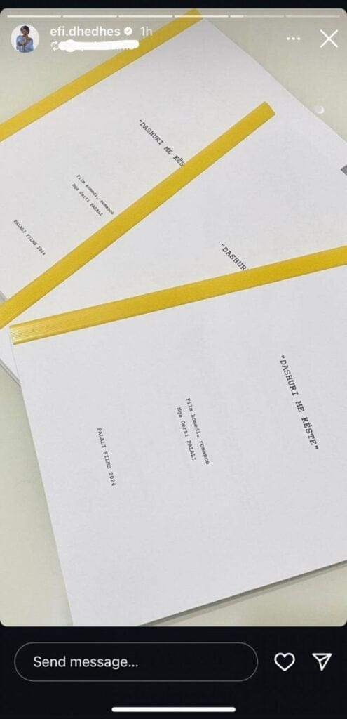 Me anë të një ‘InstaStory’ ajo ka publikuar disa fletushka të cilat dëshmojnë se Efin do ta shohim së shpejti pjesë të një filmi.