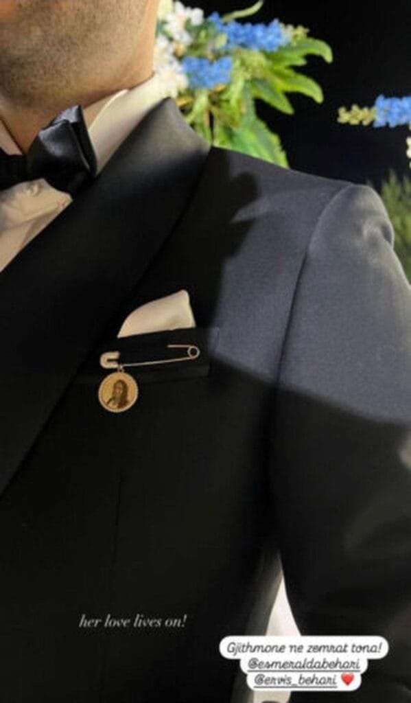 Një fotografi e vogël e nënës së këngëtarit e varur në anën e zemrës së tij, aty ku ajo është përjetë. Rikujtojmë që nëna e Ervisit është ndarë nga jeta disa vite më parë dhe në këtë ditë të veçantë të birit të saj nuk kishte se si të harrohej!