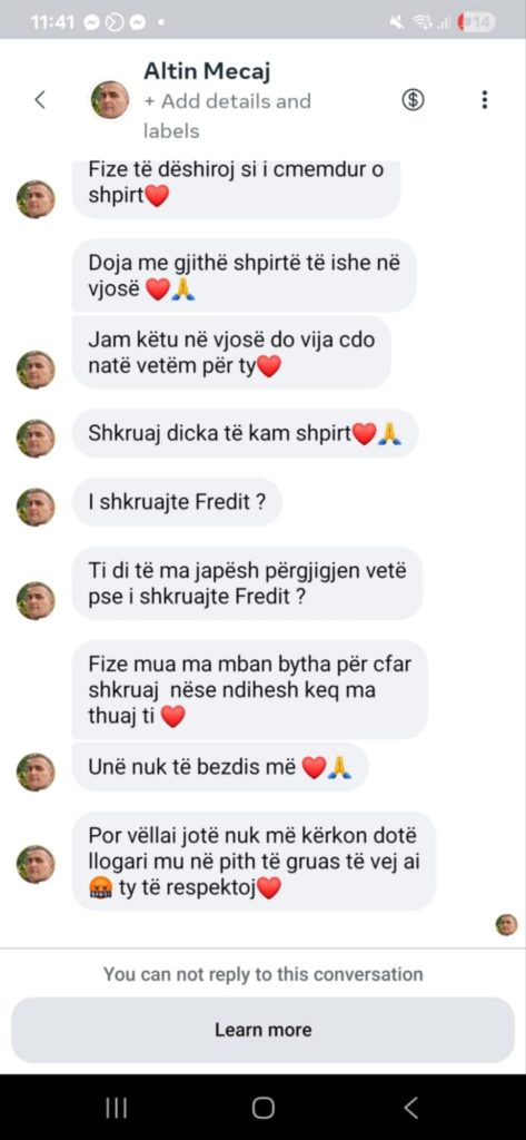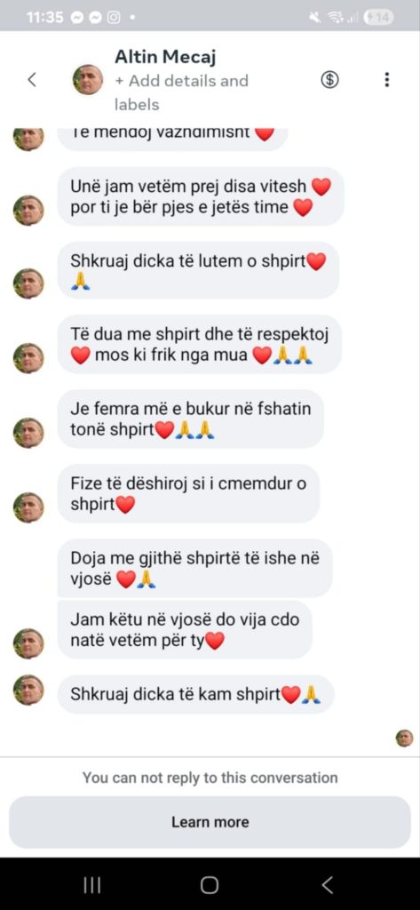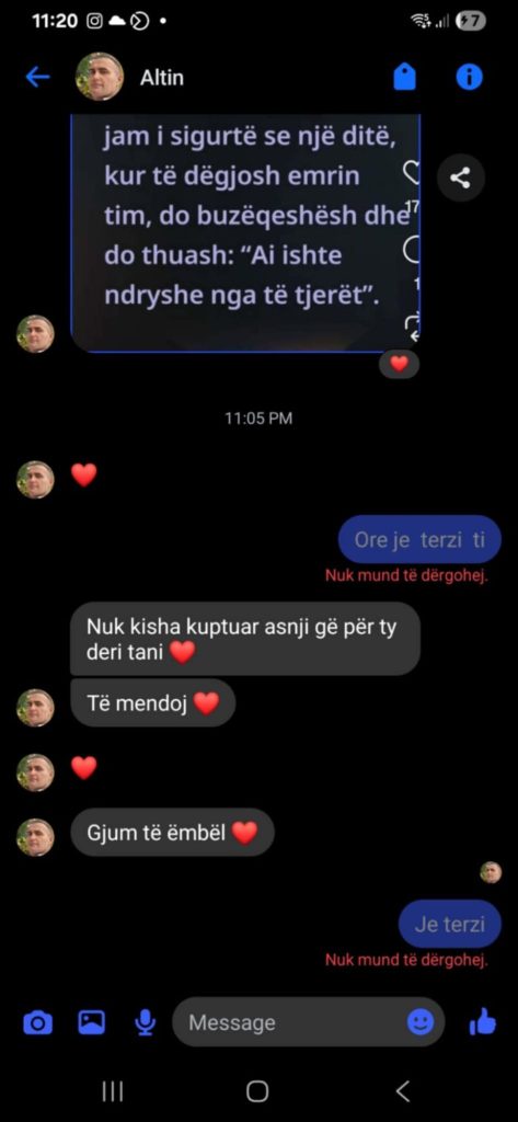 Nuk kam komunikuar dhe nuk kam pasur mundësi t’i kthej as përgjigjen e merituar, pasi Facebook nuk më lejonte t’i shkruaja, çka e bën edhe më të qartë faktin se komunikimi ka qenë i njëanshëm dhe i padëshiruar.