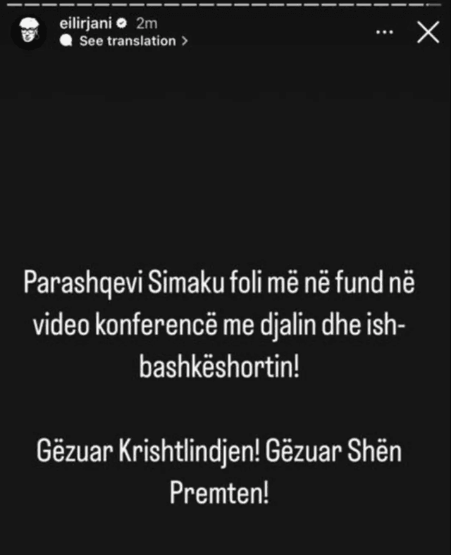 “Parashqevi Simaku foli më në fund në video konferencë me djalin dhe ish-bashkëshortin! Gëzuar Krishtlindjen! Gëzuar Shën Premten”, shkruan Ilirjani në postimin e tij.