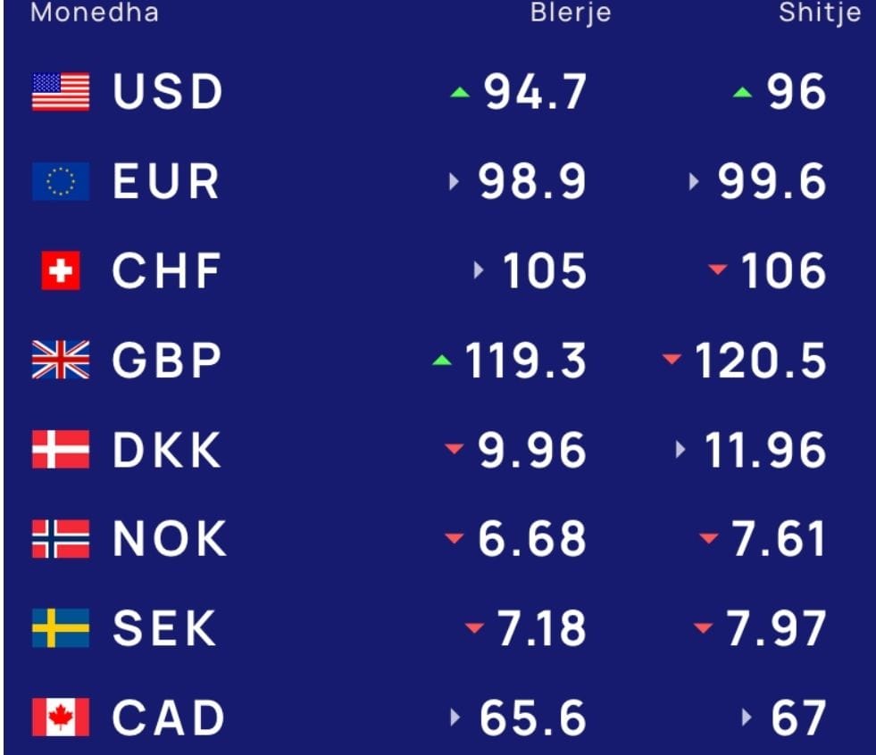 Më poshtë, po sjellim të dhënat e këmbimin valutor, për të gjitha monedhat e huaja: