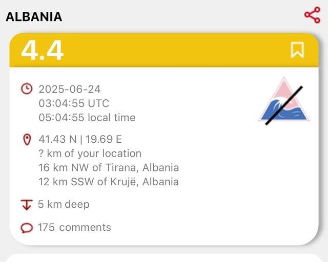 Tërmeti kishte një magnitudë prej 4.4 e shkallës Rihter, teksa deri më tani nuk njoftohen dëme materiale.